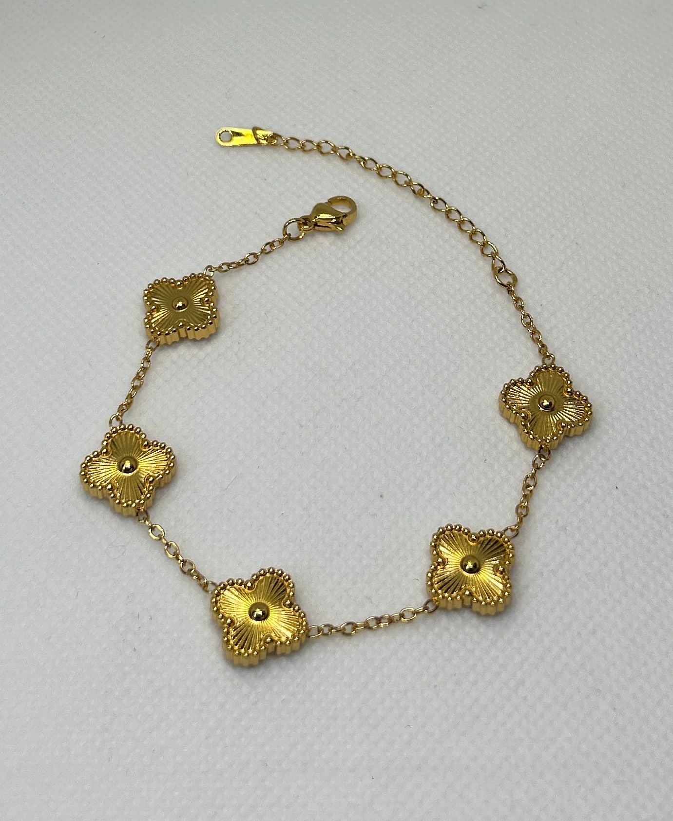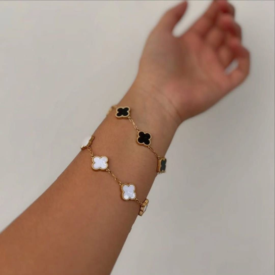Pulsera unisex fina y sofisticada con dijes de trébol en un diseño moderno y elegante . Su acabado detallado y elegante la convierte en una pieza ideal para realzar cualquier look, ya sea casual o especial. Perfecta para regalar o para añadir un toque distintivo a tu colección de accesorios.