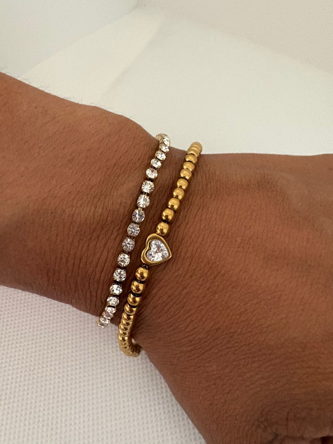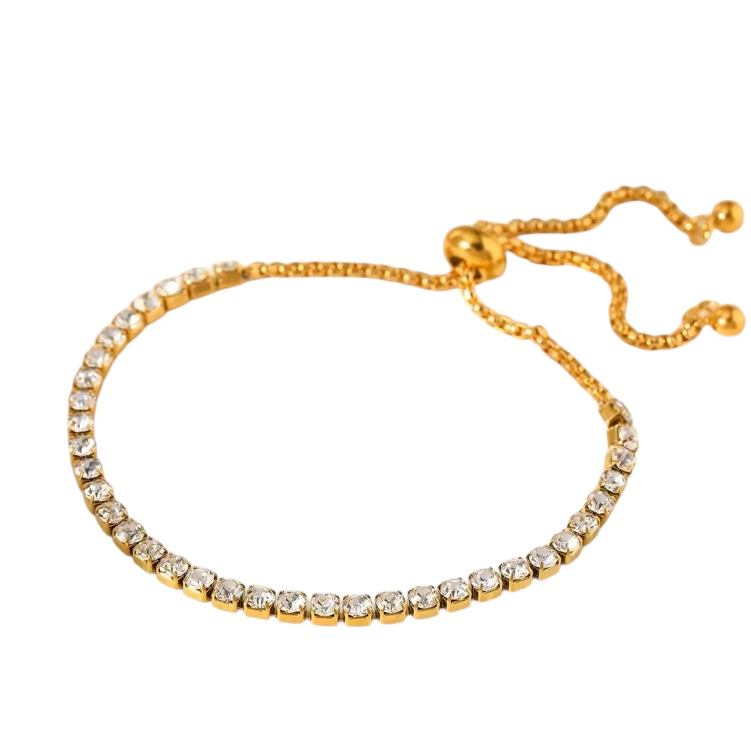 Pulsera dorada ajustable con cristales brillantes que aportan un toque sofisticado y elegante a cualquier look.